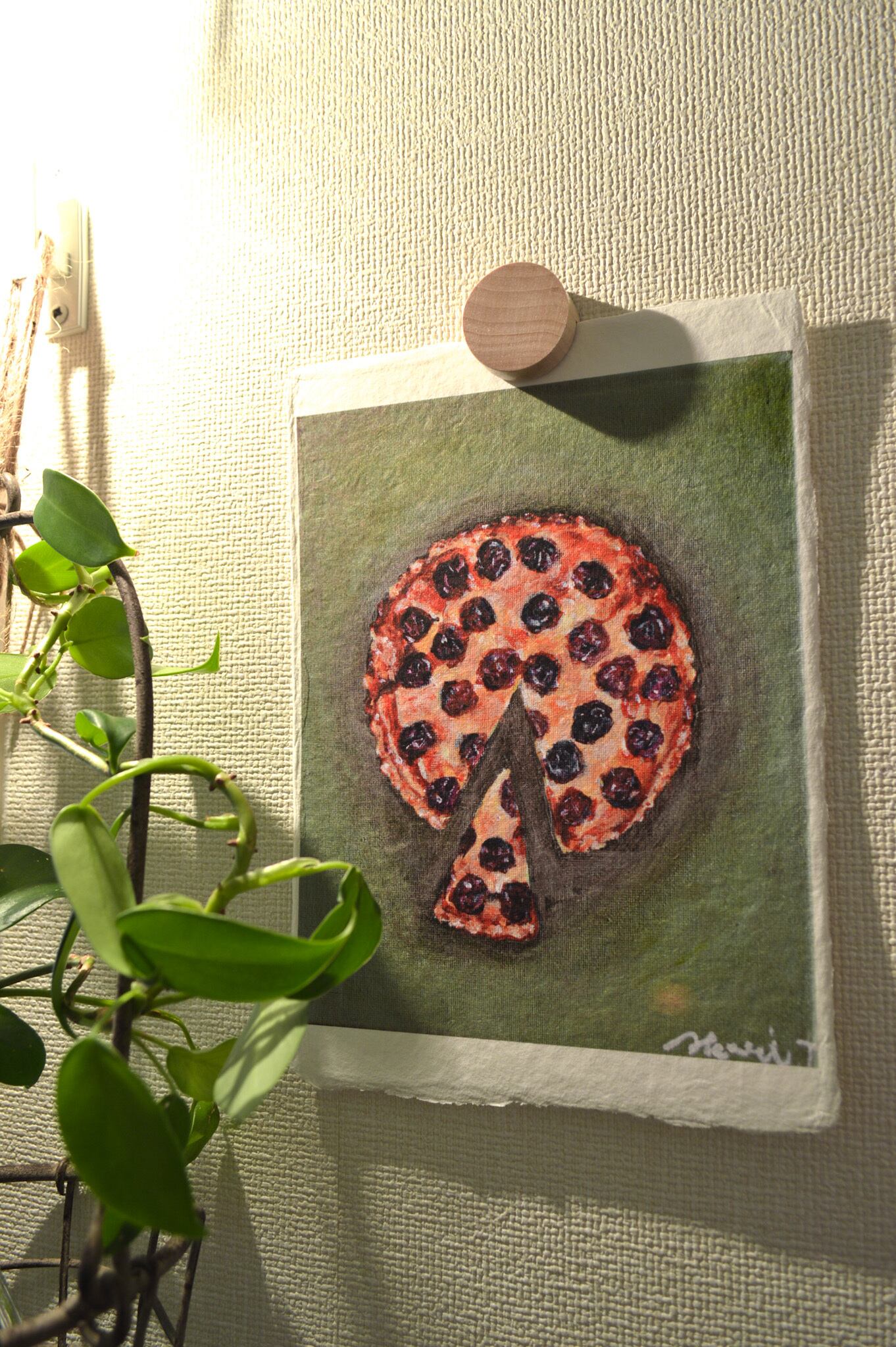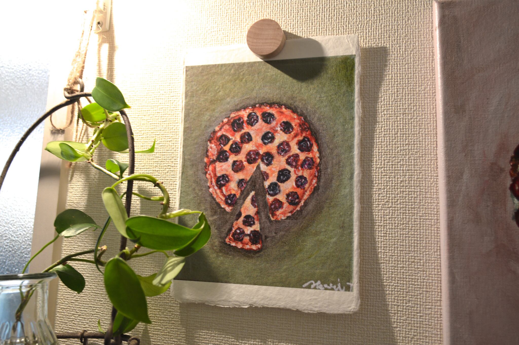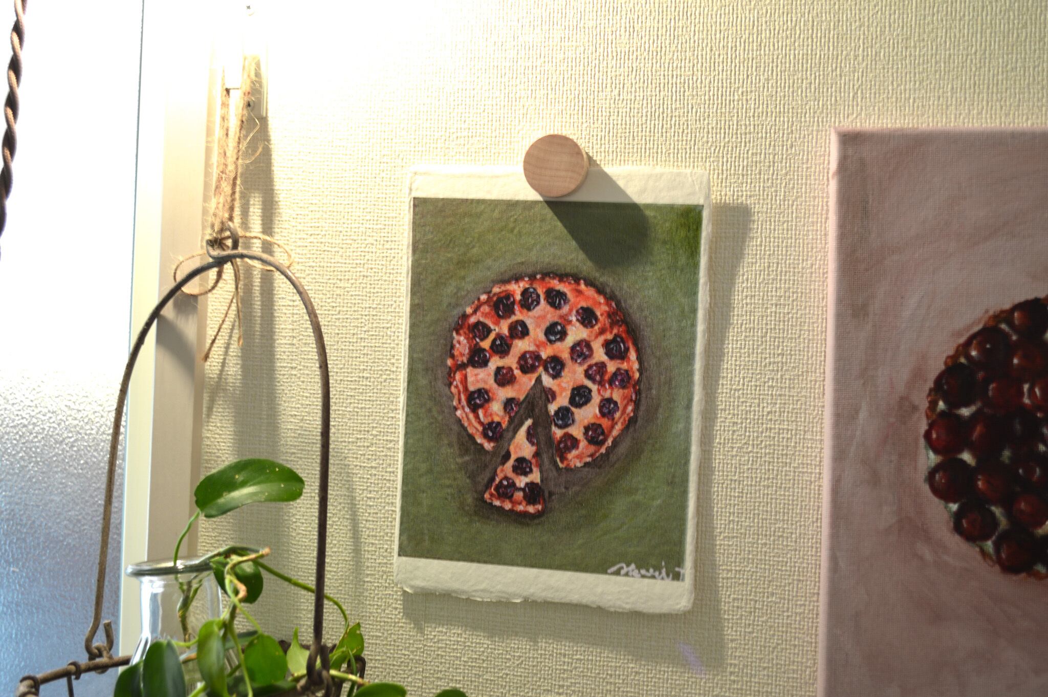 〈ひかりのかけら〉は、日本の伝統配色で洋菓子を描くアクリル画「微美(びみ)」シリーズから生まれた、和紙のミニアートです。