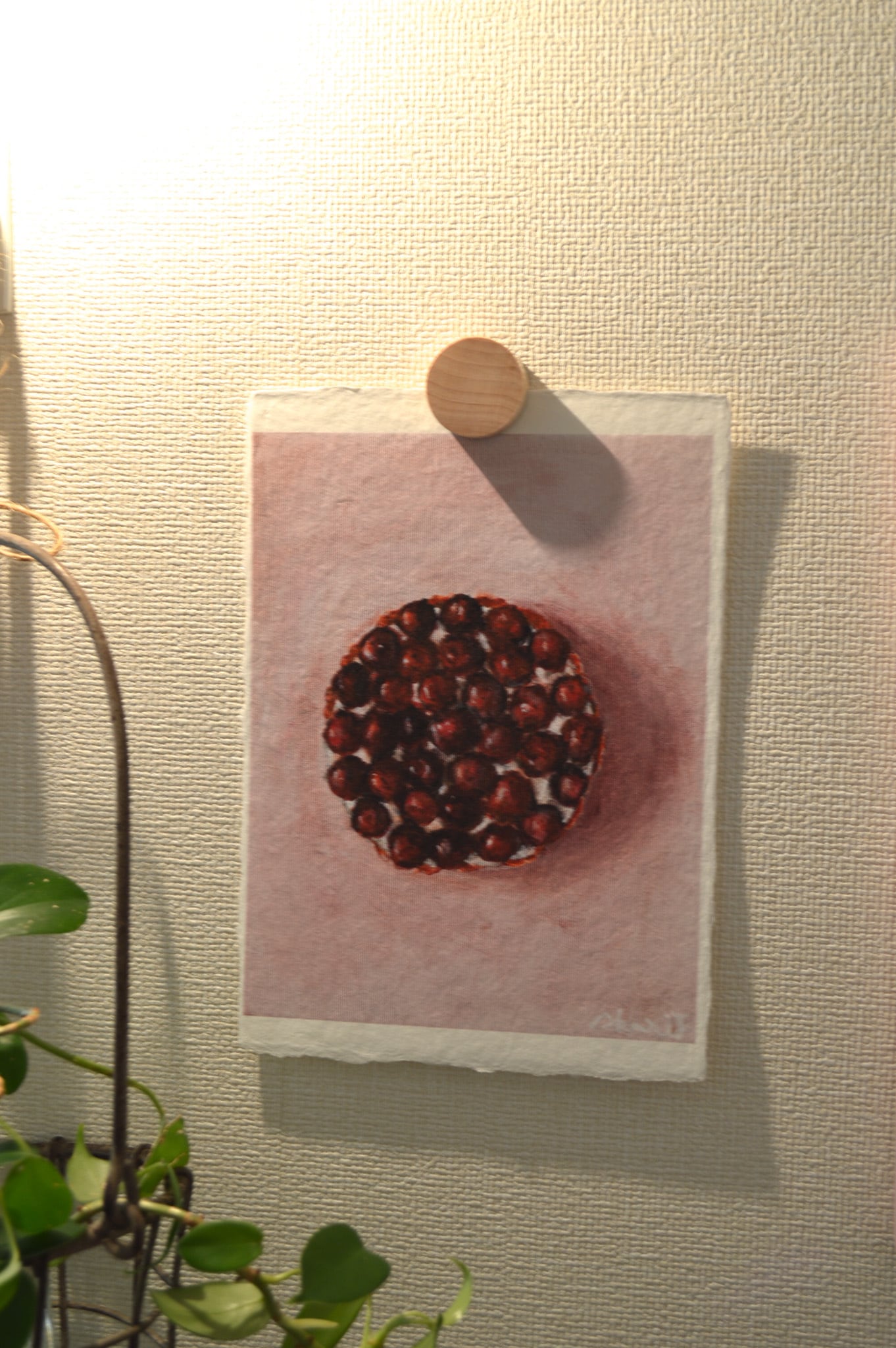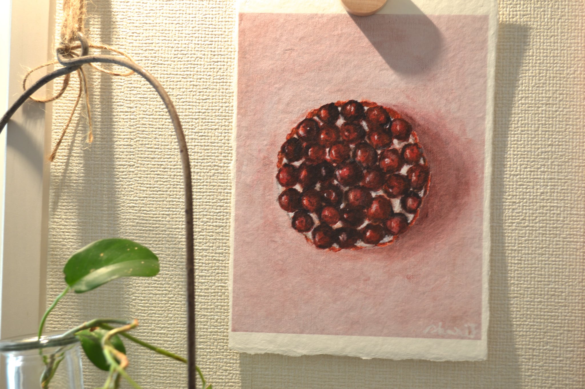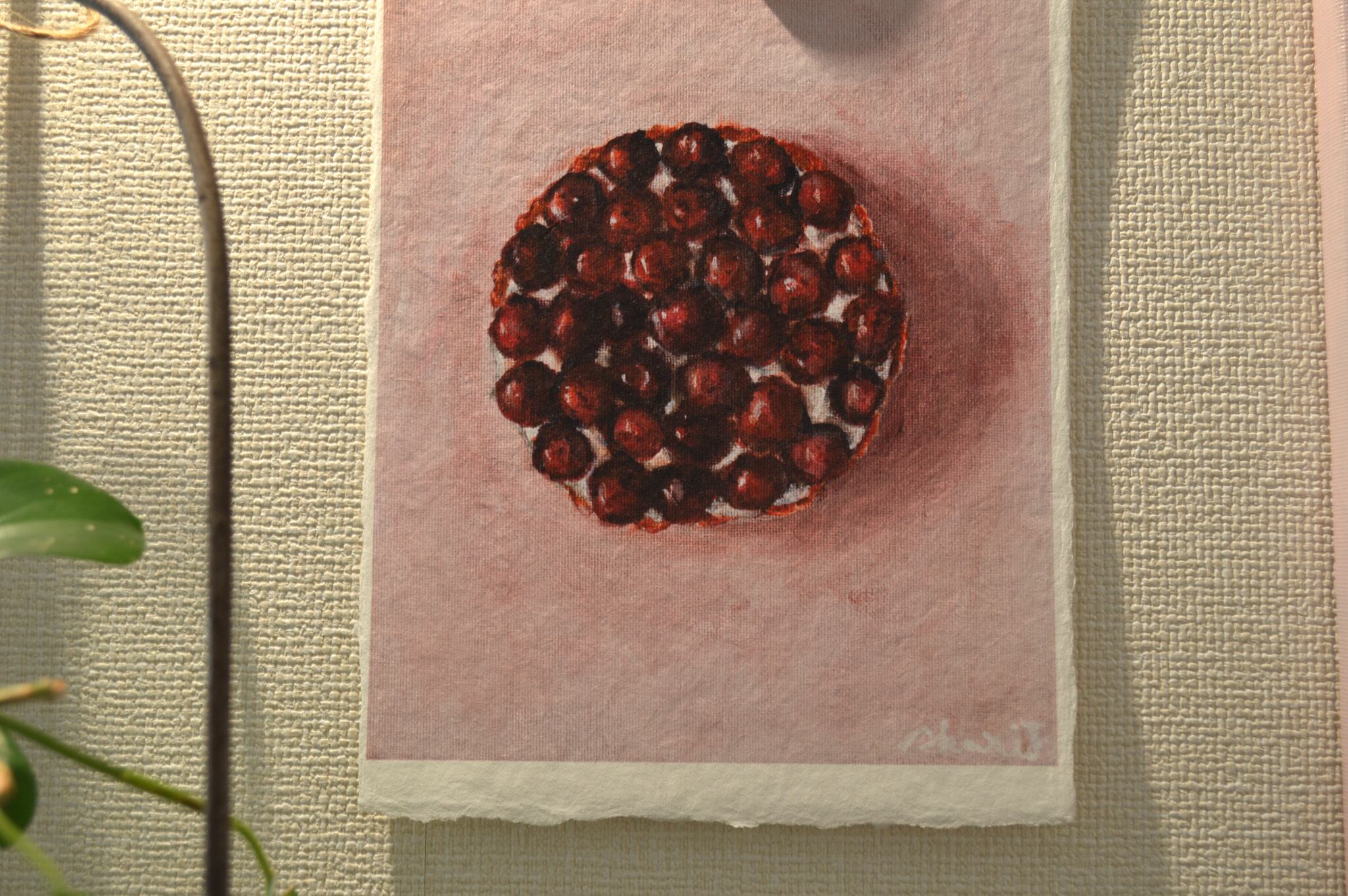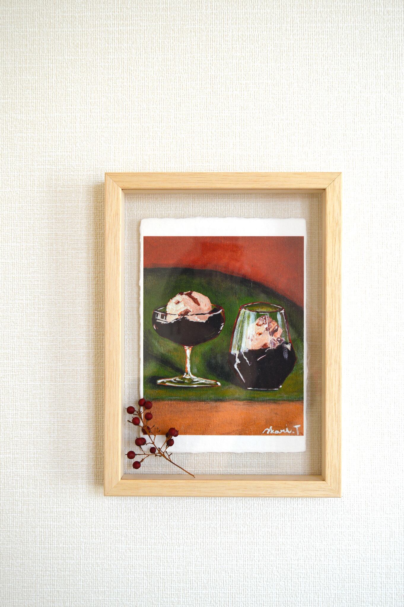 作品より少し大きめのボックス額なので和紙の耳も見せつつ、額の奥行きを活かして植物など立体物を入れていただくこともできます。