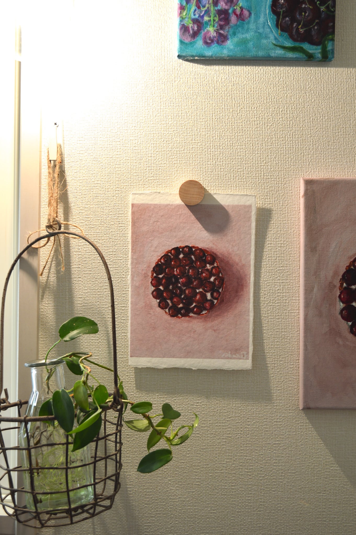 〈ひかりのかけら〉は、日本の伝統配色で洋菓子を描くアクリル画「微美(びみ)」シリーズから生まれた、和紙のミニアートです。