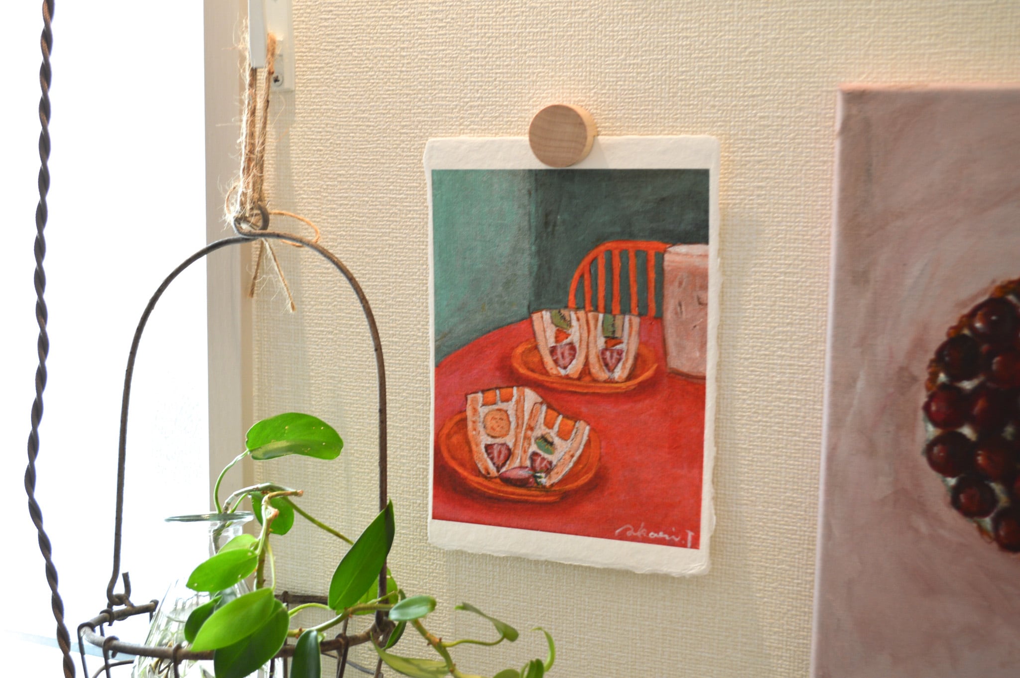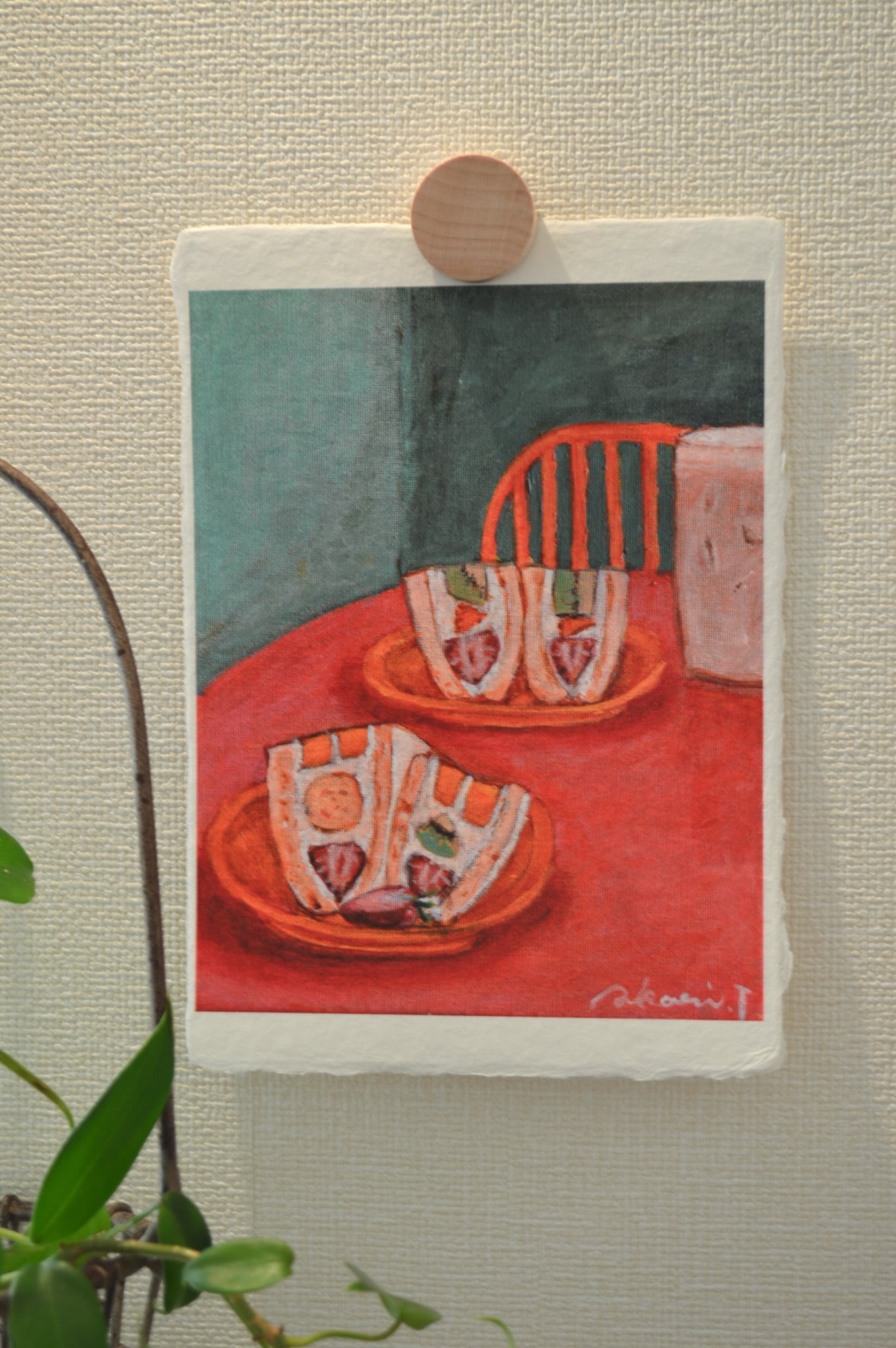 〈ひかりのかけら〉は、日本の伝統配色で洋菓子を描くアクリル画「微美(びみ)」シリーズから生まれた、和紙のミニアートです。