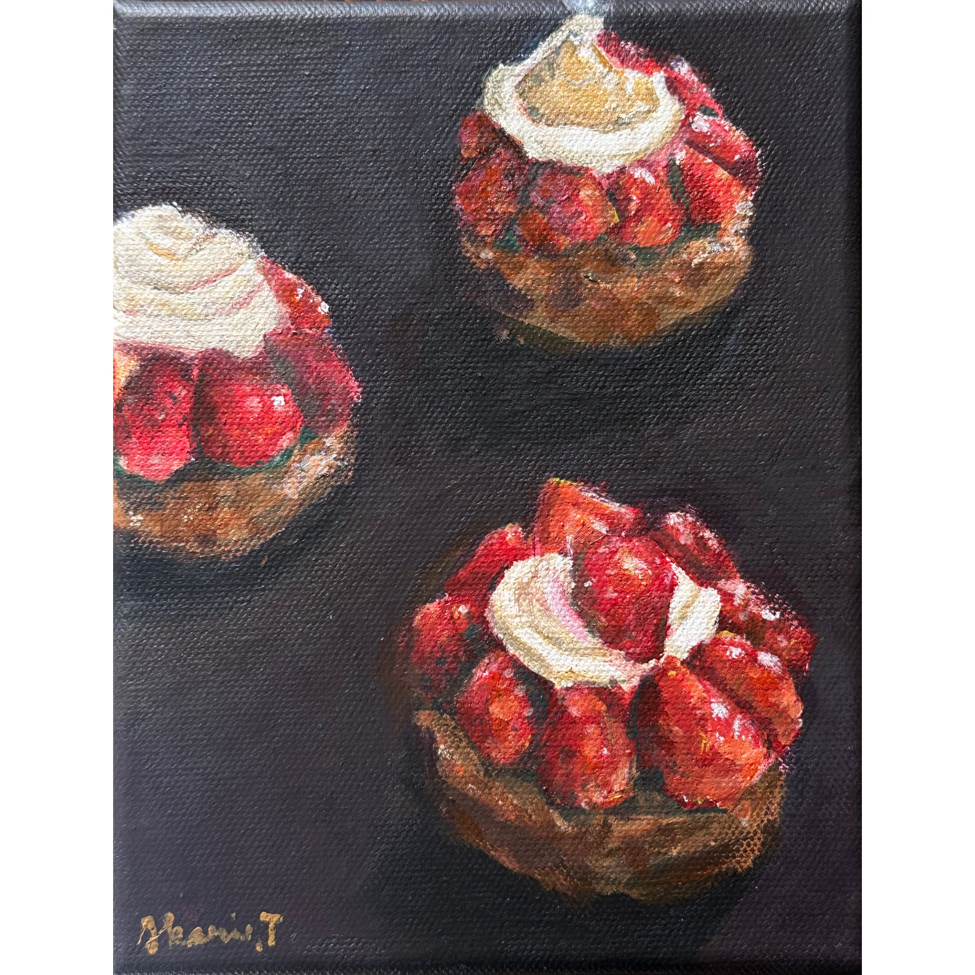 使用している絵具は耐光性に優れていますが、より長く作品を楽しんでいただくために直射日光を避けて飾ってください。